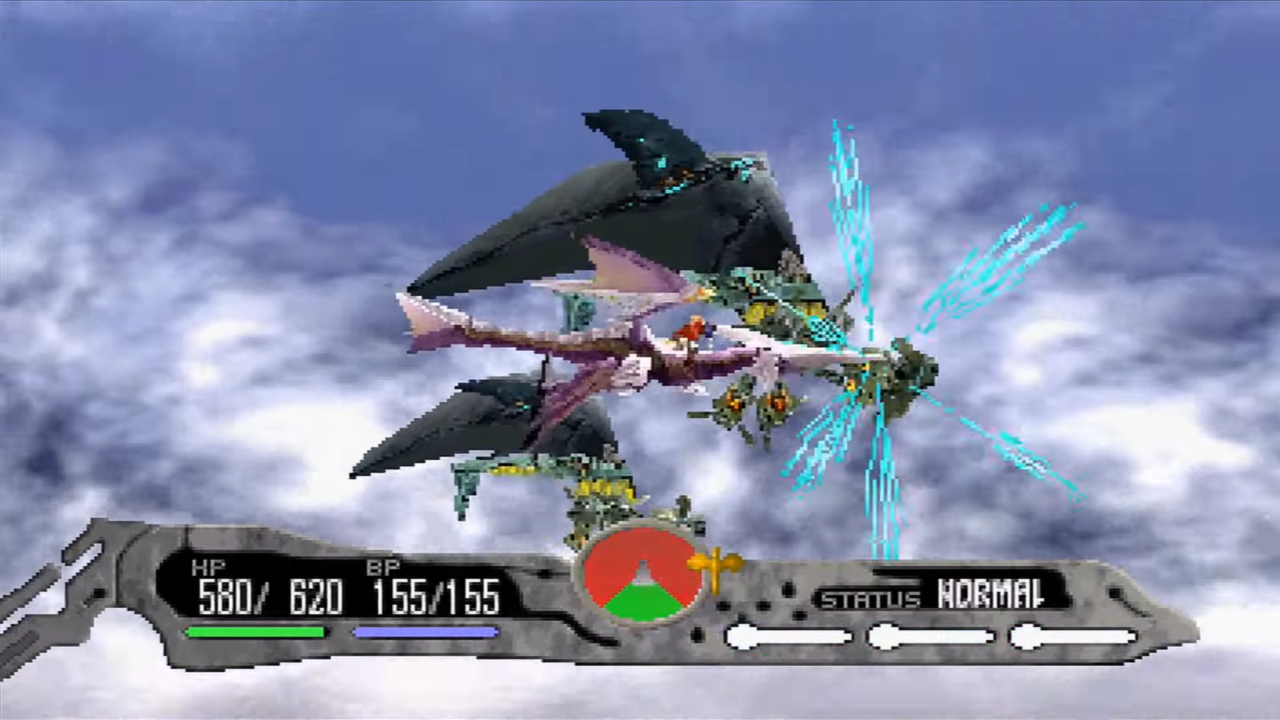 ¿Te conviene flanquear? Pues si, porque aparte de los motivos mencionados antes, también hay dos motivos de peso, y es que hay enemigos que pueden no recibir daño según desde donde los ataques, o recibir muchísimo daño porque al girar han descubierto un punto débil. Y en un juego donde es importante que acabes con los enemigos rápido y sin que te hagan mucho daño, saber dónde y como explotar las debilidades es crítico. Panzer Dragoon Saga recompensa tu habilidad en los combates con clasificaciones. Según hayas combatido, tu clasificación de pelea será más o menos alta, y te darán más dinero experiencia y objetos o menos. Ahora bien, ¿es necesario farmear en el juego? A mi parecer, no. Sin embargo, no seré yo el que te pare de llegar a nivel máximo.