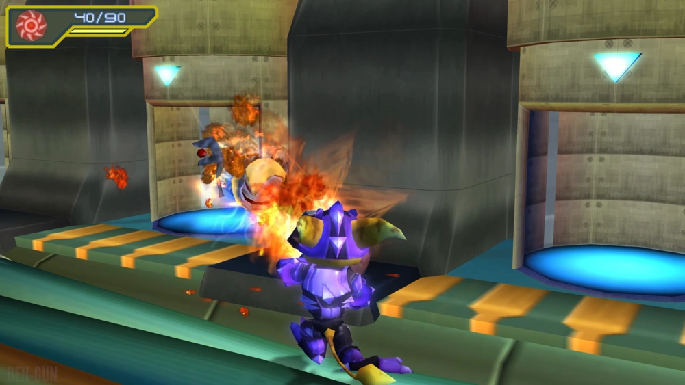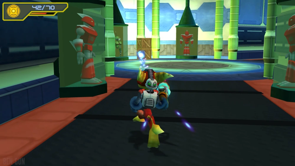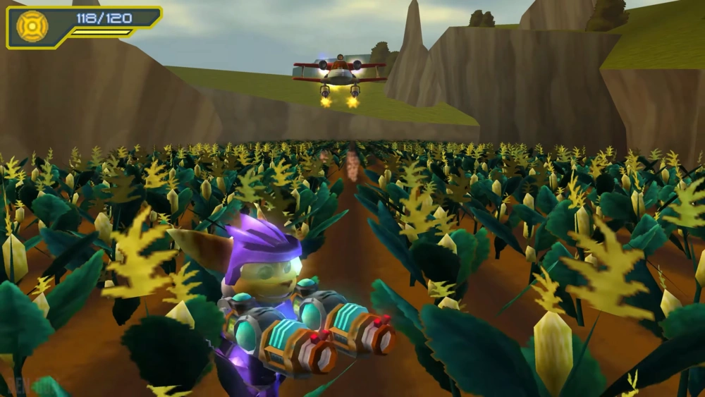 Todo y digo todo lo que rodea a Clank en este juego es infame, es basura, es un atentado contra la libertad humana y una sudada de cojones legendaria. El nivel que tiene en Ryllus es decepcionante y hasta me produce ansiedad de como podrían haber hecho algo mucho mejor y se quedó en Clank corriendo a 0.5 km/h con un par de gadgebots, tirándolos como un balón de rugby y de vez en cuando pulsando algún botón. El puñetero puzle que es la única gracia de los niveles de este robotito era saber cuando esconderse de una bola que caía por una colina.