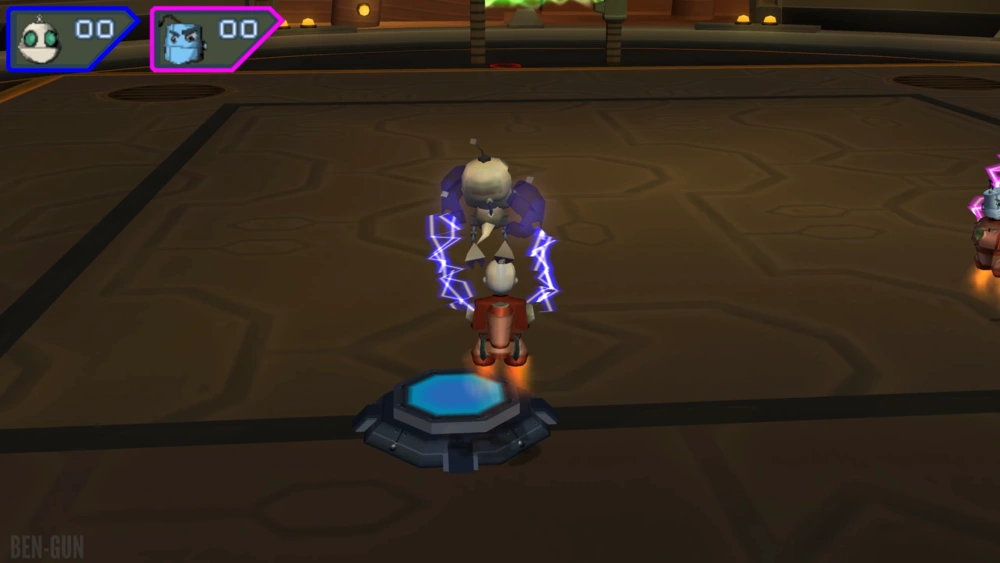 El tren no tiene frenos, vamos sin rumbo y sin frenos. No contentos con la absoluta bazofia presentada para los desafíos de lucha, vienen los de balonmano. Me cago en la cona y en la madre que parió al que pensó esto. Un puto furbito de robots donde tienes que defenderte de puñetazos, bombas, y no poder apuntar en condiciones, sumado a un control de Clank nefasto, y a tener que enfrentarte hasta a otros tres robots a la vez. Es desastroso, es horrible, es lento de narices y dependes tanto de poder moverte bien que, como el resto de cosas de este juego, hacen que sea de todo menos divertido.