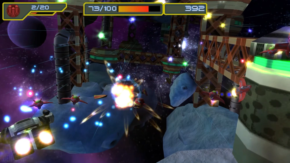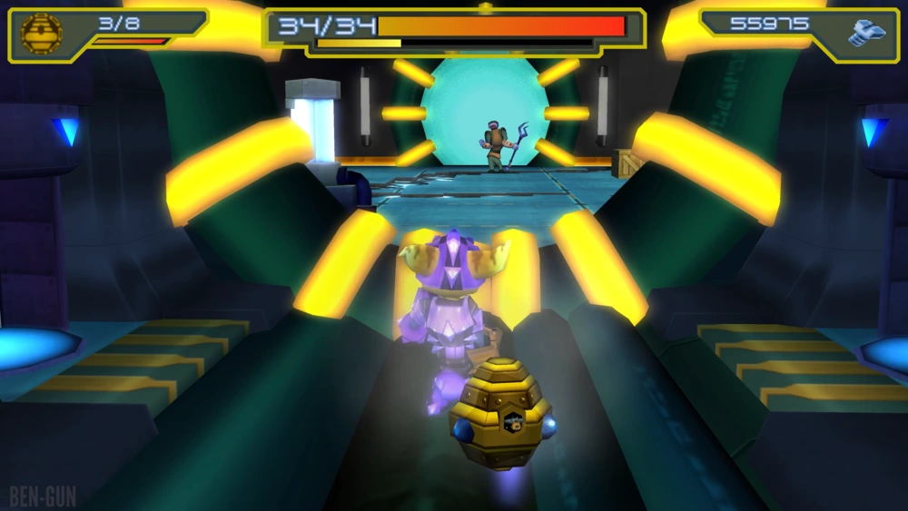 Algo muy bonito de las entregas anteriores que se empezó a perder con el 3 termina por acabar roto aquí. Antaño, los planetas tenían NPCs, tenían varias rutas con diferentes misiones, eran planetas más grandes, pero aquí… Todo está reducido al mínimo posible. Planetas que son un pasillo, cortos, cuyos únicos secretos son los guitones de titanio, y no es que estén muy escondidos precisamente. La experiencia de juego ha pasado a ser «tira para delante y mata lo que encuentres» en vez de explorar un poco más, o ya el propio hecho de tener espacios algo más amplios. Que si, a ver.
