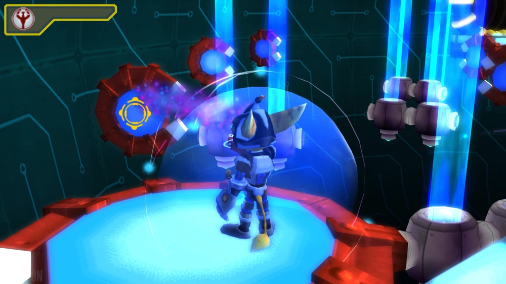 Por suerte para nosotros, por algún motivo que desconocemos, podemos navegar por el interior de Clank como si fuera un nivel más, llámalo meta. Allí dentro nos encontramos con que los enemigos han plagado y destruido partes de su pobre, pobre corazón, así que usando nuestro confiable imán tamaño «los cojones» reparamos las piezas sueltas, y este comienza la auto-reparación.