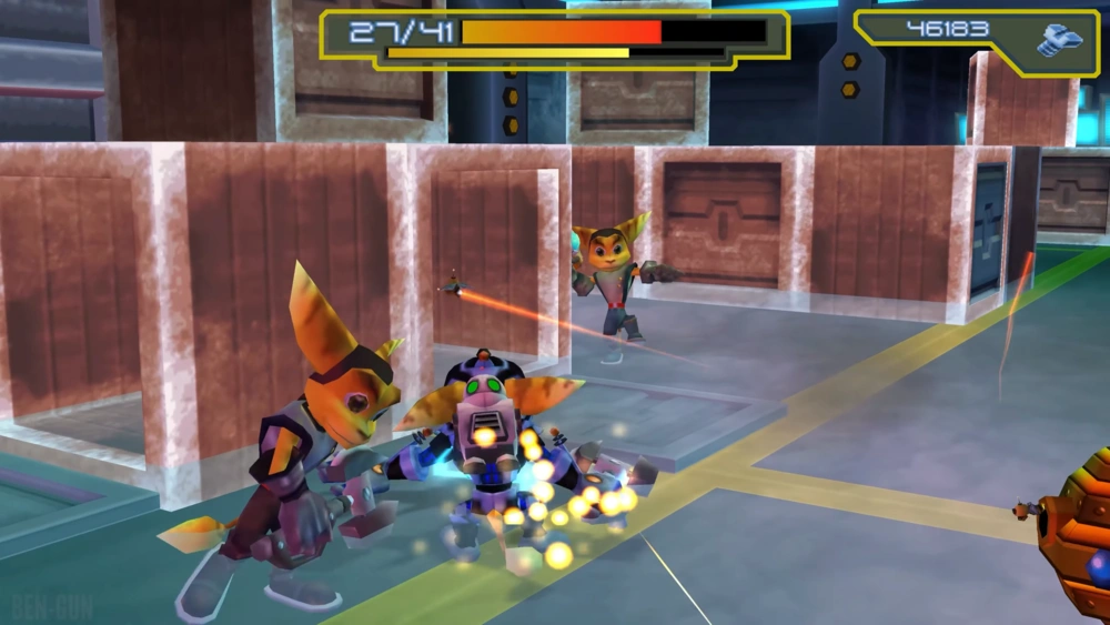Llegamos y nos miniaturizamos, les daremos una paliza equivalente a su tamaño. Una vez dentro, nos damos cuenta de qué ha estado pasando: Le han sacado la corrida espacial a nuestro furro galáctico entre otras cosas, ¡y lo han clonado! Un ejercito de Ratchets podría ser devastador para la galaxia, y muy mala reputación también para el portfolio, así que no queda otra: Clonocidio.